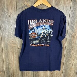 Harley-Davidson Orlando USA Graphic Tee Short Sleeve T-Shirt Blue Size Large. Good used condition!