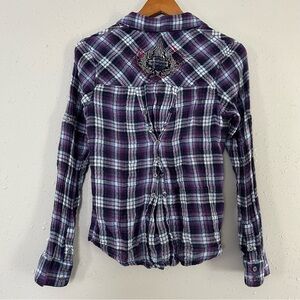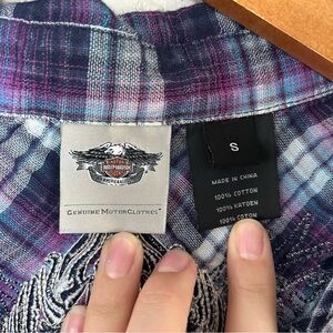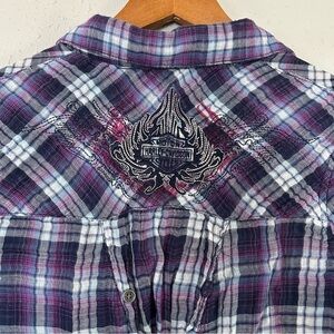 Harley-Davidson Purple Plaid Button Down Flannel Blouse Small Motorcycle
