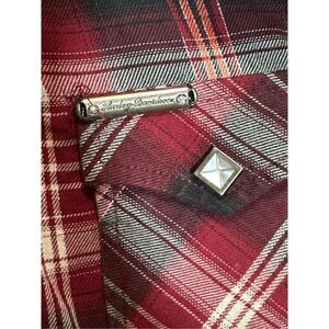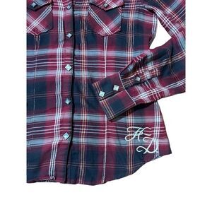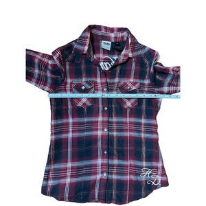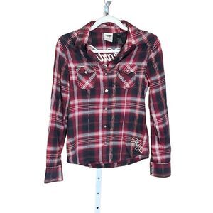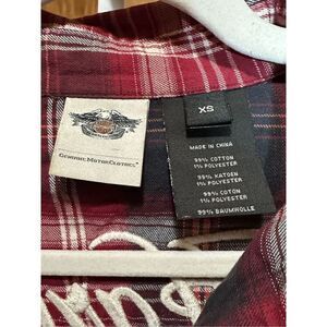 Harley-Davidson Red Orange Black Plaid Snap Front Embroidered Western Shirt Sz XS