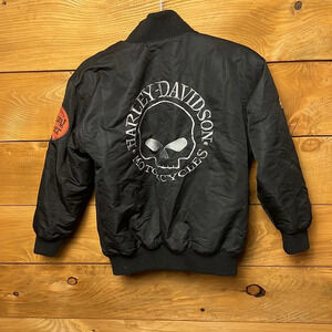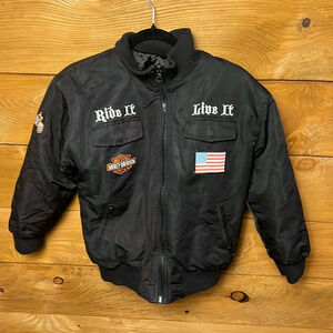 Harley-Davidson Reversible Ride It Live It Bomber Jacket Pocket Zip Black PTP 20