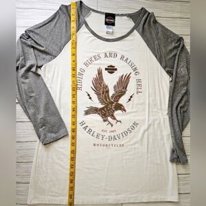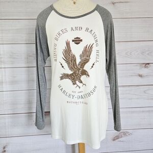 Harley-Davidson Riding Bikes Raising Hell Long Sleeve Cream Rhinestone Top Sz 1X
