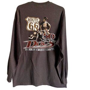 Celebrate Harley-Davidson's legacy with this commemorative long sleeve shirt. It features a Route 66 design and Doc’s 50th Anniversary graphics.