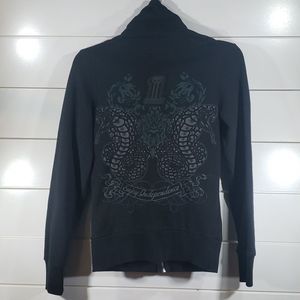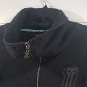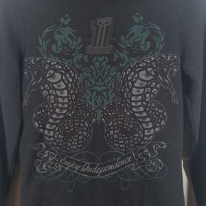Super Cute HD Cowl neck jacket. Zip up front with graphics on front and back. Zippered pockets with HD Number One Skull Logo on upper chest. Enjoy Independence cobra graphics on back.