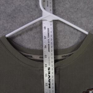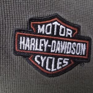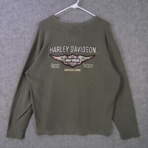 Harley-Davidson Shirt Mens Large Green Henley Thermal Waffle Knit Bar Shield