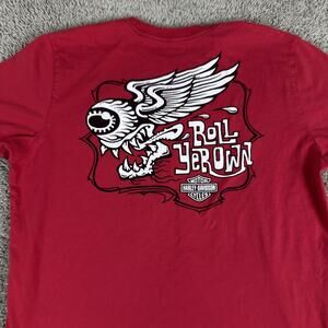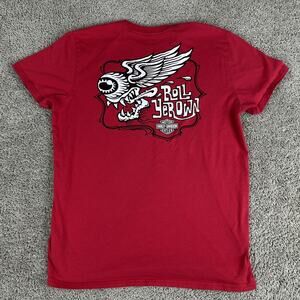 Harley-Davidson Shirt Mens Large Red Roll Yer Own Graphic Slim Fit Biker Tee