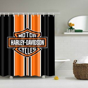 🧡🖤Two Curtains Left🖤🧡 Harley-Davidson Full Size Shower Curtain with Hooks Polyester Plastic Vibrant Color Made of water-resistant material that prevents mold and mildew Quick-drying Fabric Stainless metal buttonholes Comes with 12 white plastic C-shaped shower curtain hooks 72" X 72" is the standard shower curtain size Easy to wash, machine wash cold 🧡🖤 I also have a Matching 3 Piece Rug Set🧡🖤One Set Left