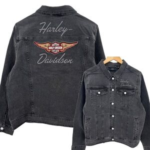 Harley-Davidson® Silver Wing Stretch Black Denim Jacket Women’s XL