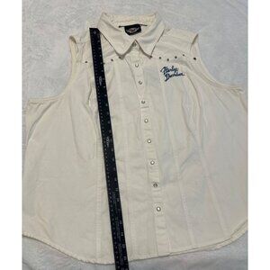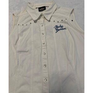 Harley-Davidson Sleeveless White Button-Up Shirt, Embroidered Front & Back, XL