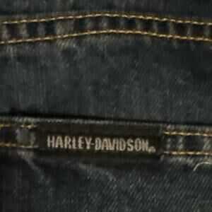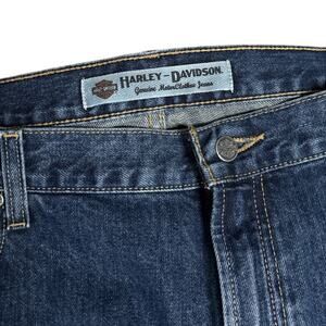 These Harley-Davidson jeans offer timeless style and all-day comfort with a relaxed fit through the seat and thigh and a classic straight leg. Crafted from durable denim, they feature traditional five-pocket styling, a zip fly with button closure, and subtle Harley-Davidson branding. Perfect for casual wear or riding, these jeans combine rugged quality with iconic American design. Excellent condition.