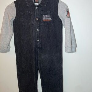 Cool black jumpsuit with gray sleeves. Features Harley-Davidson logo. Ideal for casual wear. Vg condition only worn a handful of times. Genuine Harley Davidson