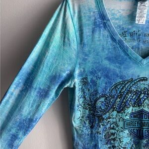 Harley-Davidson Turquoise Tie-Dye V-Neck Shirt