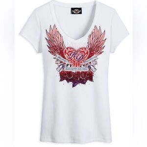 Harley-Davidson Valentines Collection White Graphic Tee Ribbed V-Neck Large Y2K