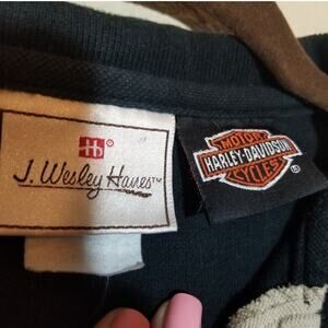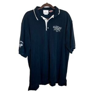 Harley- Davidson Vintage Polo Shirt Men's Size XL Black Dallas Chest Arm Logo Graphic.