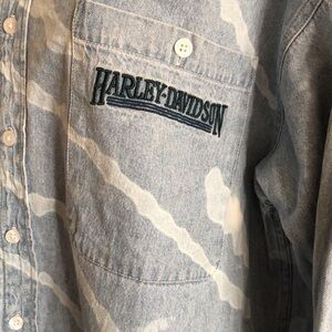 Harley-Davidson Vintage Blue Chambray Embroidered Logo Denim Work Shirt Bleach