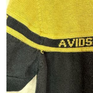 Harley-Davidson Women's Black/Yellow Cropped Knit Sweater, Size XL. Please note there are condition issues.... the stitching has come undone at the seam between the yellow/black body of the sweater right by the arm pits on both sides in front. The yellow knit seems to have detached from the black knit. I have included pictures of both defects.