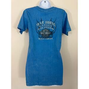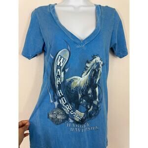 Harley-Davidson War Horse Ocala Florida Blue V-Neck Graphic Tee Size M