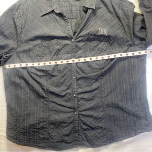 Elevate your biker style with this Harley-Davidson Women’s Black Pinstripe Button-Up Shirt in Size 2W. Featuring a subtle pinstripe design, embroidered HD logo, and dual chest pockets, this long-sleeve shirt offers a classic yet edgy look. Made from a comfortable, breathable fabric, it’s perfect for casual wear or layering on your next ride.
