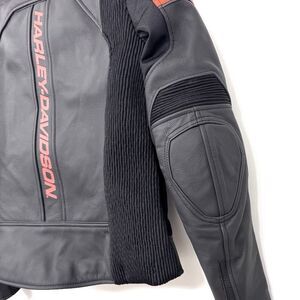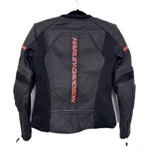 The Harley-Davidson Women's Brawler Leather Jacket (98007-21VW) is a stylish motorcycle jacket designed for women. Made of black leather, it features a full zip closure and is accented with zippers and the iconic Harley-Davidson® logo. This size small jacket is perfect for motorcycle enthusiasts or those looking for a rugged yet fashionable outerwear option.