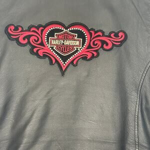 Back detail: large embroidered Harley-Davidson heart logo patch
