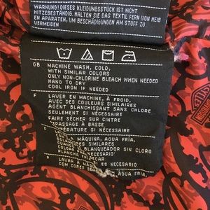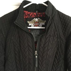 Classic Harley-Davidson riding jacket with front zip, inside pockets and zippers on the sleeves. 100% polyester. Harley-Davidson is stitched in red on the left sleeve cuff. Great used condition. No longer riding, this jacket needs a new owner!
