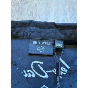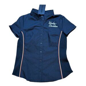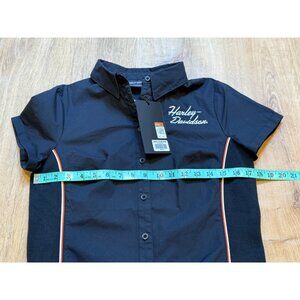 Harley-Davidson Womens Short Sleeve Button-Up Shirt Black W/ Orange Accents M