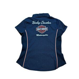 This Harley-Davidson shirt offers a casual, stylish fit with vibrant branding details, suitable for motorcycle enthusiasts or casual wear.