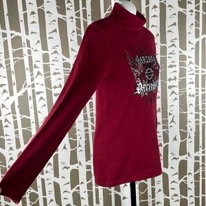 Harley-Davidson Y2K Turtleneck Studded Cotton Sweater Burgundy S