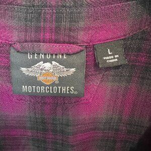 Harley-Davidson, Zippered Tank Top, Purple Black Plaid, Tank Top, Size L, Braided Ribbon Back