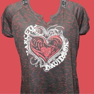 Harley Davidson cute affliction style top! Black with red mixed in.