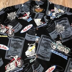 Harley-Davidson x Tori Richard Oil Can Camp Shirt Size XL Black Gray