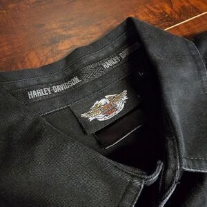 Harley-Davidson Embroidered Black Short Sleeve Button Front Shirt Mens Sz Large