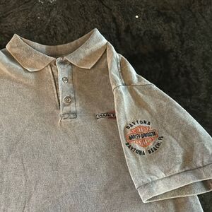Classic gray polo shirt with Harley-Davidson logo. Comfortable and stylish.