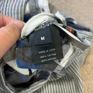 Blue plaid reverses to gray stripe