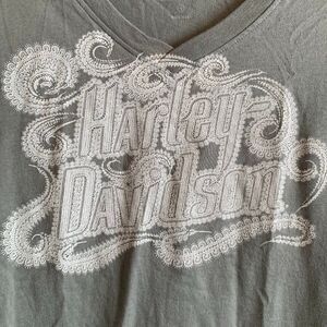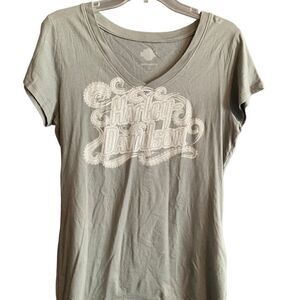Harley-Davidson Short Sleeve Grayish/Green & White V-Neck T-Shirt Size Medium
