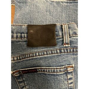 There is one area in the inseam where a hole was sewn up. Also some minor distressing on the right knee area as well as the back, bottom hems of both legs. All of this is depicted in the photos.