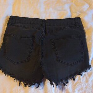 Chic black jean shorts with a distressed finish. Perfect for casual outings. Super stretchy