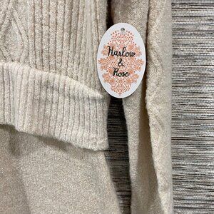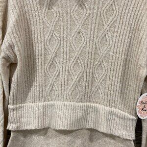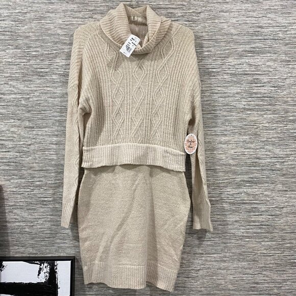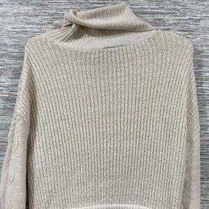 Harlow & Rose Beige Cable Knit Turtleneck Sweater Dress Ribbed Detail Womens M