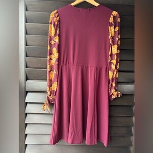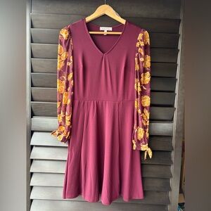 Harlow & Rose Maroon Small Dress Long Sheer Floral Sleeves NWT