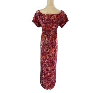 Harlow & Rose Smocked Boho Maxi Dress XL Square Neck Boho Cottagecore Retrp Chic