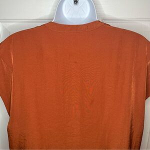 Harlowe & Graham Half Sleeve Pleat Blouse Pumpkins Orange Size Small. This relaxed, boxy blouse in a vibrant pumpkin orange hue perfect for fall. Half sleeves and a split collar, offering a stylish comfortable fit. The buttoned front pleat adds a touch of sophistication. Gently used Good Preowned Condition. No holes or stains.