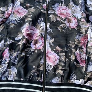 Harlowe & Graham Jacket Sz M Black Tapestry Floral Bomber Coat Zip Up Silky Fun