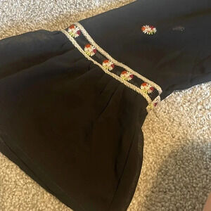 Preowned very nice condition black peplum top with floral embroidery. Top is sheer with a solid black liner underneath. Sleeves are sheer with no liner. Size medium.