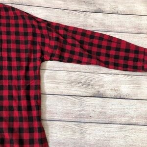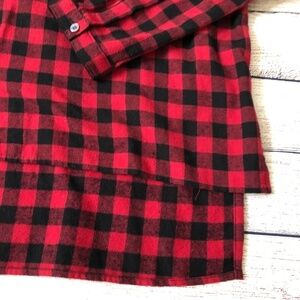NWT red oversized long sleeve buffalo hi-lo plaid shirt. Check pattern. 100% cotton.