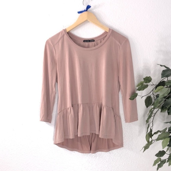 Harlowe & Graham Pink Frill Bottom 3/4 Sleeve Top