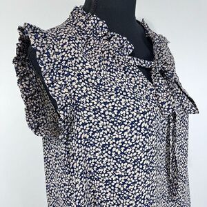 Harlowe & Graham Sleeveless Tunic Blouse Sz S Women’s Navy & Tan Floral Vines
