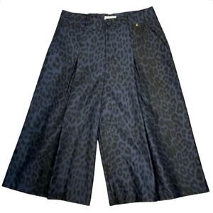 Harlyn Anthropologie Black Blue Leopard Print Onca Culotte Pants Sz 12 Wide Leg