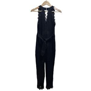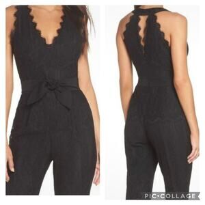 Harlyn Scallop Trim Lace Jumpsuit S Black Halter Cocktail Formal Sleeveless Lined.