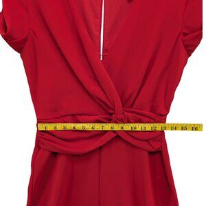 Harlyn Twist Front Jumpsuit Womens Solid Red Short Sleeve Wide Leg Size S