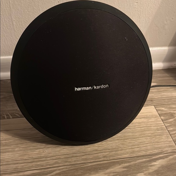 Harman Kardon Bluetooth speaker in sleek black. Perfect for high-quality sound. Works great, however has to be plugged into work. No longer holding charge. A few scratches but otherwise great condition.