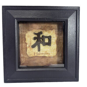 Harmony 6" Asian Chinese Black Framed Matted Decor w/Wooden Frame Glass Oriental